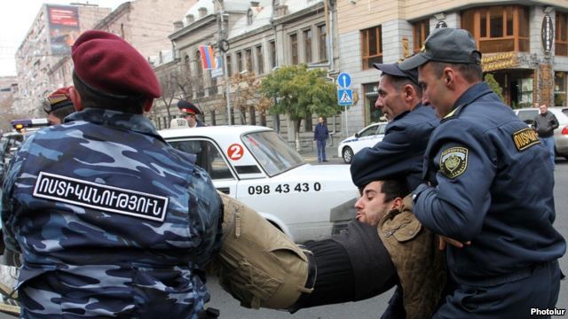 On the initiative of civic activists, a number of events were held in Yerevan on December 2, 2013 on the occasion of Russian President Vladimir Putin’s arrival in Armenia. They intended to express Armenian citizens’ protest against Serzh Sargsyan’s personal and ungrounded decision for Armenia’s accession to Customs Union and Eurasian Union and to defend the principal of sovereignty of Armenia, stipulated by RA Constitution. During these events citizens’ rights to free movement, freedom of expression and peaceful assemblies were violated by RA police. More than hundreds of citizens, including journalists who were implementing their professional activities were through using brutal force and without proper grounds brought to various police departments in Yerevan. In parallel, the Armenian authorities urged hundreds of citizens to leave their workplaces during working hours against their will and to take part in various events organized within the scope of Putin’s visit to Armenia.