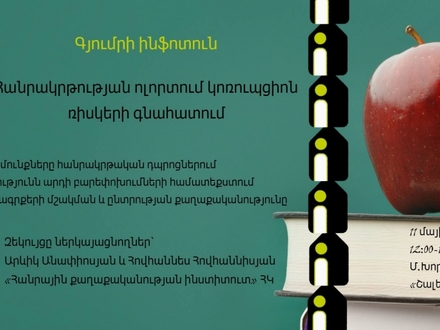 Թրանսփարենսի Ինթերնեշնլ հակակոռուպցիոն կենտրոնը (ԹԻՀԿ) և Հանրային քաղաքականության ինստիտուտը` ԱՄՆ Միջազգային զարգացման գործակալության (ԱՄՆ ՄԶԳ) աջակցությամբ «Պահանջատեր հասարակություն՝ հանուն պատասխանատու կառավարման» ծրագրի շրջանակներում իրականացրել են «Հանրակրթության ոլորտում կոռուպցիոն ռիսկերի գնահատում» ուսումնասիրությունը, որը ներկայացվել է Երևանում մարտին: Ուսումնասիրության շրջանակներում վեր են հանվել հանրակրթական դպրոցներում վճարովի պարապմունքների, ներառական կրթության և դասագրքերի հրատարակման հետ կապված այն խնդիրները, որոնք կոռուպցիոն ռիսկեր են առաջացնում: