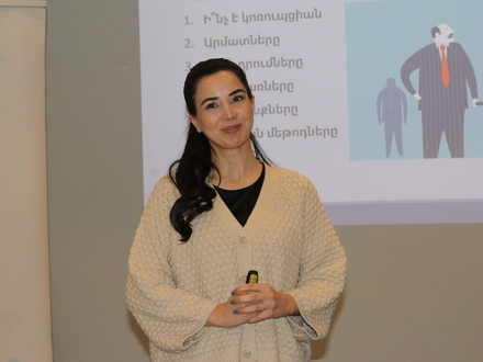 Առաջին երկու օրերին մասնակիցները ուսումնասիրեցին կոռուպցիայի էությունը, սահմանեցին դրա տեսակները և ծանոթացան կոռուպցիայի չափման մեթոդներին։ Դասընթացի շրջանակում նրանք նաև լսեցին շահերի բախման, բարեվարքության և ազդարարների համակարգի վերաբերյալ կարևոր տեղեկատվություն։