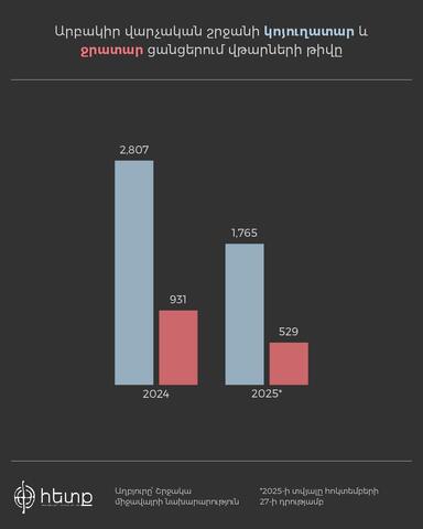 «Վեոլիա ջուր» ընկերության տրամադրած տվյալների վերլուծությունից պարզ է դառնում, որ Արաբկիր վարչական շրջանում միայն 2024 թվականին տեղի է ունեցել ջրատարի 931 վթար, իսկ 2025 թվականի հունվարից օգոստոս ամիսներին (մոտ 10 ամիս) ջրանջատման 529 վթար է գրանցվել։ Նույն ժամանակահատվածում Արաբկիր վարչական շրջանի կոյուղատար համակարգում տեղի է ունեցել համապատասխանաբար 2807 և 1765 վթար։