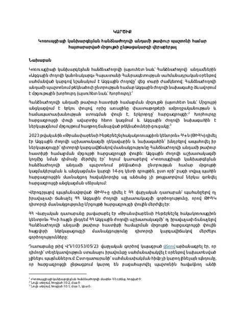 Թրանսփարենսի Ինթերնեշնլ հակակոռուպցիոն կենտրոնը և Իրավունքի զարգացման և պաշտպանության հիմնադրամը կոռուպցիայի կանխարգելման հանձնաժողովի անդամների ընտրության մրցութային գործընթացն առավել արդյունավետ կազմակերպելու և գործընթացները լավարկելու նպատակով ներկայացրել են դիտարկումներ և առաջարկություններ։