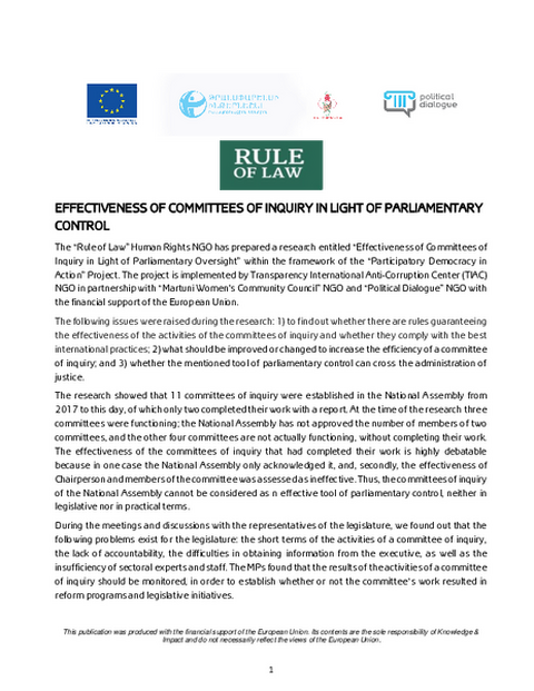 TIAC has published its recent report that touches upon the effectiveness of the Committees of Inquiry in light of parliamentary control.