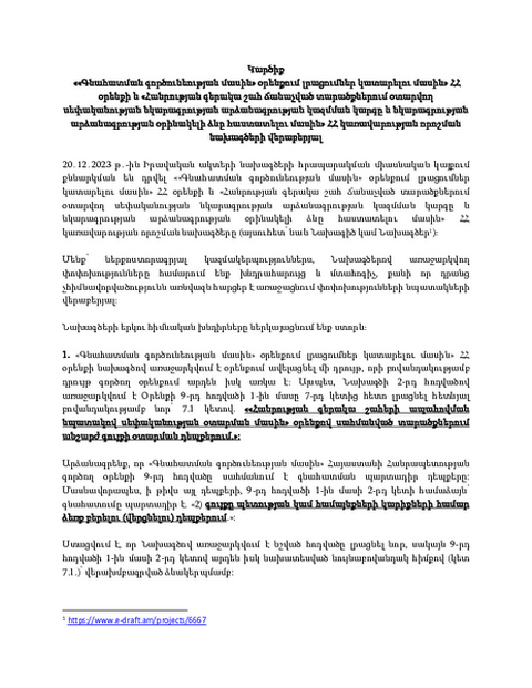 CSOs have published an opinion on the draft RA Law "On Amendments to the Law 'On Appraisal Activities'" and the RA Government Decision "On the Procedure for Compiling a Description Protocol for Property Alienated in Territories Recognized as of Primary Public Interest and on Approving a Model Form of the Description Protocol."