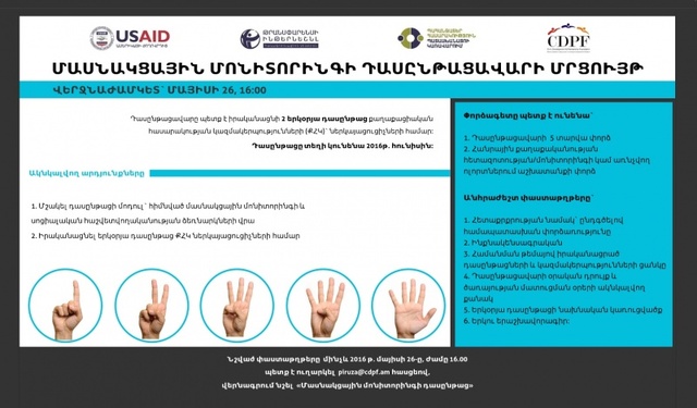 Մասնակցային մոնիտորինգի դասընթացավարի մրցույթի հայտարարության վերջնաժամկետը երկարաձգվել է