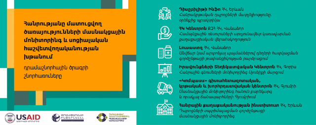 «Հանրությանը մատուցվող ծառայությունների մասնակցային մոնիտորինգ և սոցիալական հաշվետվողականության խթանում» փոքր դրամաշնորհային ծրագրի երկրորդ փուլի շնորհառուները