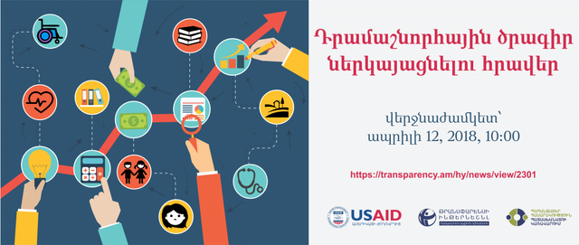 Թրանսփարենսի Ինթերնեշնլ հակակոռուպցիոն կենտրոն ՀԿ-ն ԱՄՆ ՄԶԳ-ի աջակցությամբ իրականացվող «Պահանջատեր հասարակություն՝ հանուն պատասխանատու կառավարման» ծրագրի շրջանակներում հրավիրում է քաղաքացիական հասարակության կազմակերպություններին (ՔՀԿ)՝ ներկայացնելու փոքր դրամաշնորհային ծրագրերի առաջարկներ` հանրությանը մատուցվող ծառայությունների մասնակցային մոնիտորինգի և սոցիալական հաշվետվողականության խթանման մեթոդների կիրառմամբ: