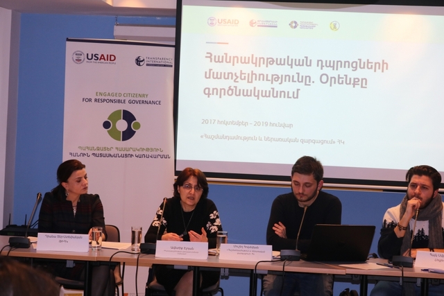Բացման խոսքով հանդես են եկել ՀՀ քաղաքաշինության պետական կոմիտեի նախագահի տեղակալ Անահիտ Հախումյանը և Թրանսփարենսի Ինթերնեշնլ հակակոռուպցիոն կենտրոնի (ԹԻՀԿ) հետազոտությունների համակարգող Դիանա Տեր-Ստեփանյանը: Զեկույցը ներկայացրել են «Հաշմանդամություն և ներառական զարգացում» ՀԿ նախագահ Մուշեղ Հովսեփյանը և սոցիոլոգ Հայկ Սմբատյանը: Զեկույցի ներկայացումից հետո տեղի է ունեցել քննարկում:
