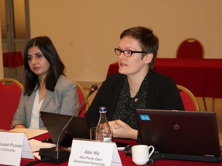 ԲԿԳ-Հայաստանի և ԱՃԹՆ Հայաստանի` իրական սեփականատերերի թափանցիկության ուղղությամբ Հայաստանում գրանցված առաջընթացը ներկայացրել են համապատասխանաբար` ՀՀ կառավարության աշխատակազմից ԲԿԳ Աշխատանքային խմբի քարտուղար Լիլյա Աֆրիկյանը, ԱՃԹՆ-ի քարտուղարության ղեկավար Լուսինե Թովմասյանը և Տարածքային կառավարման և ենթակառուցվածքների նախարարի տեղակալ Լիլjա Շուշանյանը: Հայաստանի հակակոռուպցիոն ռազմավարության և իրական սեփականատերերի ճանապարհային քարտեզի մշակման ուղղությամբ Հայաստանում գրանցված առաջընթացին է անդրադարձել ՀՀ արդարադատության նախարարության խորհրդական Անի Վարդերեսյանը: