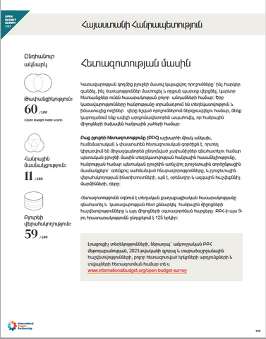 Հրապարակել է Բաց բյուջեի հետազոտության (ԲԲՀ) հարցման 2023 թվականի արդյունքները։