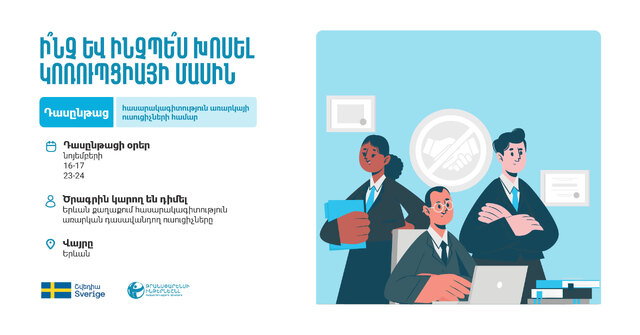 «Թրանսփարենսի Ինթերնեշնլ հակակոռուպցիոն կենտրոն» (ԹԻՀԿ) հասարակական կազմակերպությունը իրականացնում է վերապատրաստման դասընթաց Երևան քաղաքում «Հասարակագիտություն» առարկան դասավանդող ուսուցիչների համար։