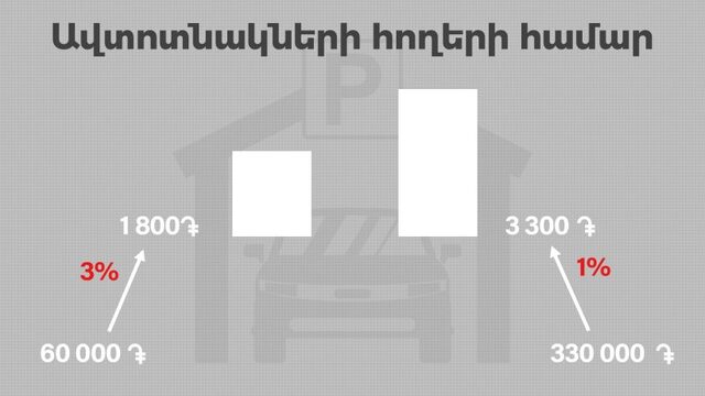 Օրինակ՝ մինչև օրենքի ուժի մեջ մտնելը ավտոտնակի 1 քմ-ի վարձակալության բազային արժեքը 60,000 դրամ էր, և դրա 3 տոկոսը կազմում էր 1,800 դրամ։ Փոփոխություններից հետո քաղաքապետարանը 3 տոկոսը նվազեցրել է մինչև 1 տոկոս, սակայն բազային արժեքն էլ կազմել էր 330,000 դրամ, ուստի այս թվի 1 տոկոսը կկազմեր 3,300 դրամ, այսինքն՝ այս նվազեցումներով հանդերձ քաղաքապետարանը պետք է շատ ավելի շատ մուտքեր ապահովեր վարձավճարներից։