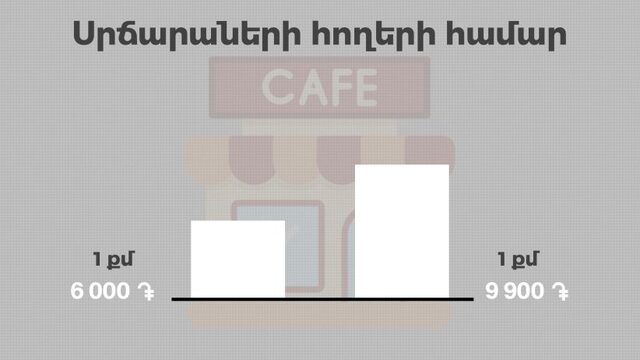 Մեկ այլ օրինակ. մինչև 2021-ը սրճարանի զբաղեցրած տարածքի 1 քմ-ի բազային արժեքը 60,000 դրամ էր, ավագանին որպես վարձավճար հաշվարկում էր 10 տոկոսը՝ 6,000 դրամ։ Երբ բազային արժեքը 1 քմ-ի համար դարձավ 330,000 դրամ, ավագանին որոշեց այս թիվը նվազեցնել՝ դարձնելով 3 տոկոս՝ այսինքն 9,900 դրամ։ Այս պարզ հաշվարկներից երևում է, որ Երևանի հողերի վարձակալության վճարների թիվը պլանավորվել է ցածր, գրեթե հաշվի չի առնվել օրենքի փոփոխությունների արդյունքում դրույքաչափերի բարձրացումը։