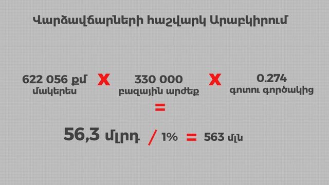 Հարկ է ընդգծել, որ այս հաշվարկներն իրականացվել են ամենանվազ ցուցանիշների հիման վրա (օրինակ՝ վարձավճարի դրույքաչափ վերցրել ենք 1 տոկոսը, այնինչ որոշ հողօգտագործման տեսակների համար ավագանին սահմանել է 2-7 տոկոս)։