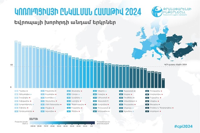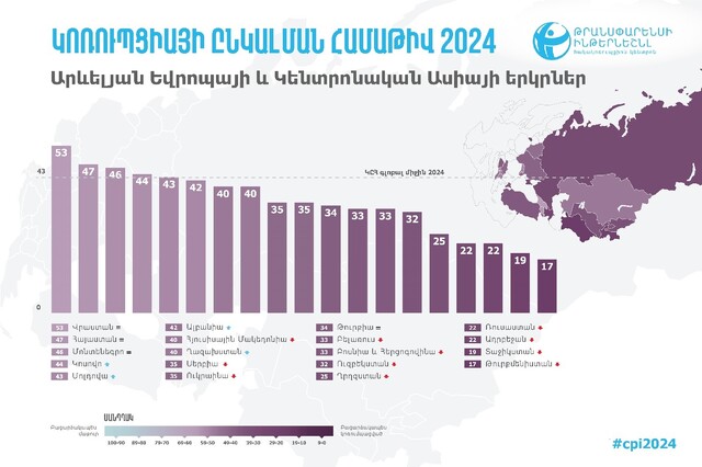 Հայաստանի ԿԸՀ 2024թ. արժեքը նախորդ տարվա համեմատ մնացել է նույնը՝ 47 միավոր 0-ից (բացարձակապես կոռումպացված) 100 (բացարձակապես մաքուր) սանդղակի վրա։