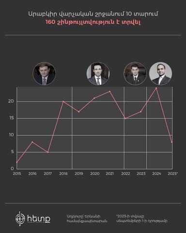 Քաղաքապետարանի քաղաքաշինական հատուկ ծրագրերի վարչության պետ Ալիկ Վարդազարյանի հետ քննարկման արդյունքում վերջապես կարողացանք ստանալ որոշակի տվյալներ, որոնք ներկայացնում են Արաբկիրում կառուցապատման մասշտաբները։ 2015 թ․-ից մինչև 2025 թ․-ի նոյեմբերն ընկած ժամանակահատվածում Արաբկիրում բազմաբնակարան համալիրների կառուցման նպատակով տրվել է ընդհանուր 160 շինարարության թույլտվություն։ Այդ թույլտվություններով կառուցվել է/կառուցվում է 260 բազմաբնակարան շենք։ Ամենաշատ շինթույլտվությունները տրվել են 2021 թ․-ին՝ 23 հատ (59 հատ բազմաբնակարան շենք կառուցելու համար)։ Շինթույլտվությունների առատությամբ երկրորդը 2024 թ․-ն է՝ 24 շինթույլտվություն 42 հատ շենք կառուցելու նպատակով։
