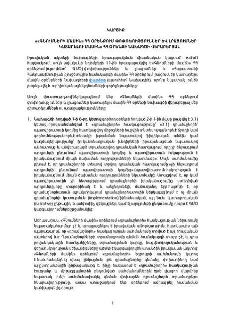 Թրանսփարենսի Ինթերնեշնլ հակակոռուպցիոն կենտրոնը ներկայացրել է դիտարկումներ ու առաջարկություններ «Գնումների մասին» ՀՀ օրենքում փոփոխություններ և լրացումներ կատարելու մասին ՀՀ օրենքի նախագծի վերաբերյալ։